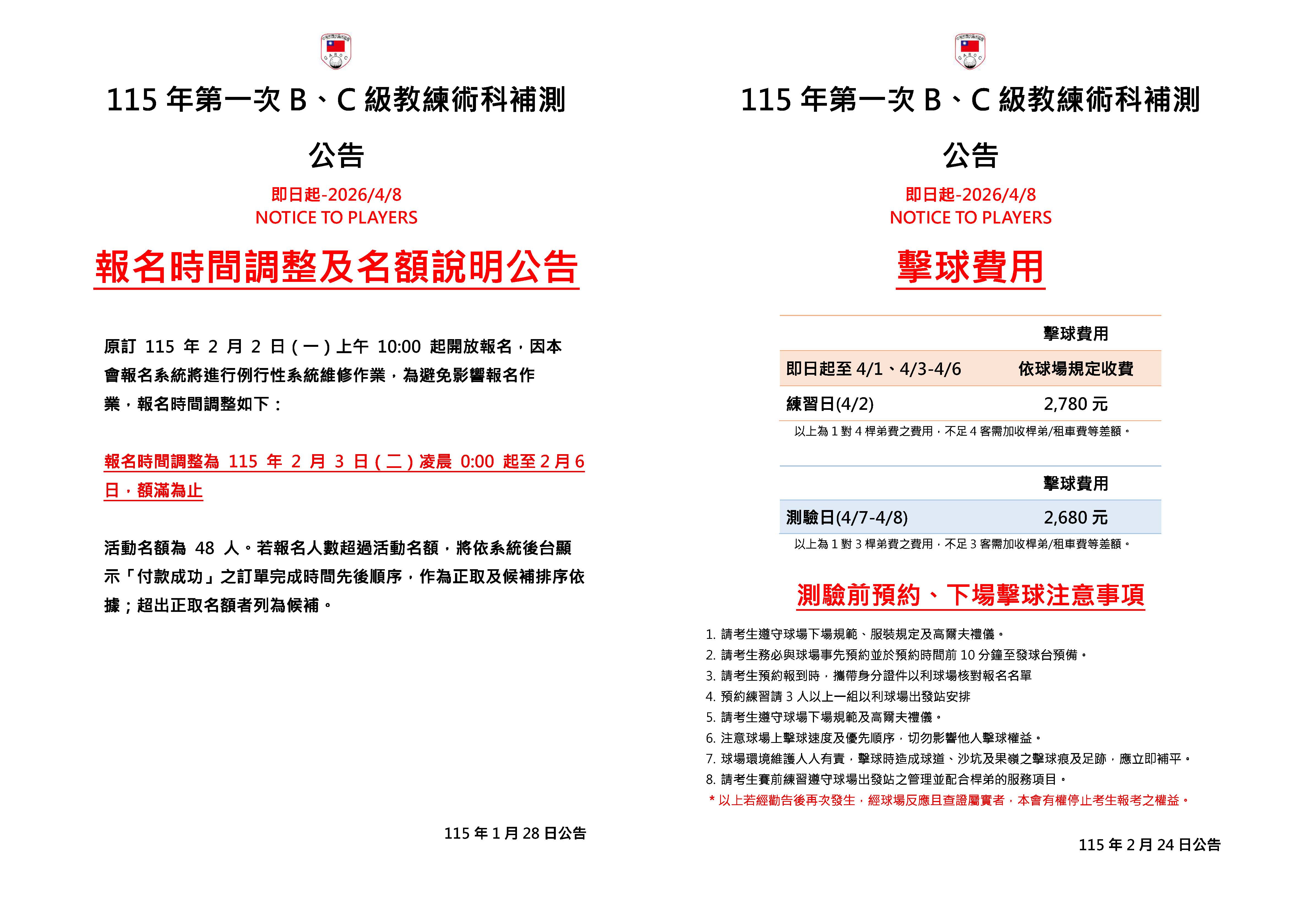 115年第一次B、C級教練術科補測活動(草案) 0128更新