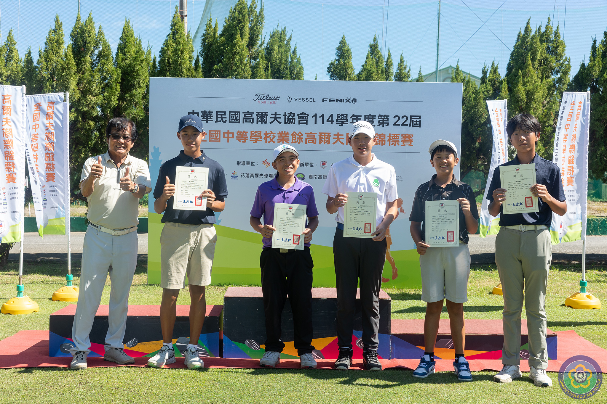 台南私立灜海高中國中部林品鈞繳決勝輪男子最佳72(E)桿,累計303(+15)桿,從原來的第五,搶下季軍,成為本屆賽會最大的黑馬。四至八名依為:北市新興國中駱守維303桿、竹縣文興國中林子人308桿、北市仁愛國中楊善存311桿、苗栗致民國中陳楷翔319桿、北市新興國中黃振翔321桿。其中陳楷翔為前八名中唯一的七年級生。
