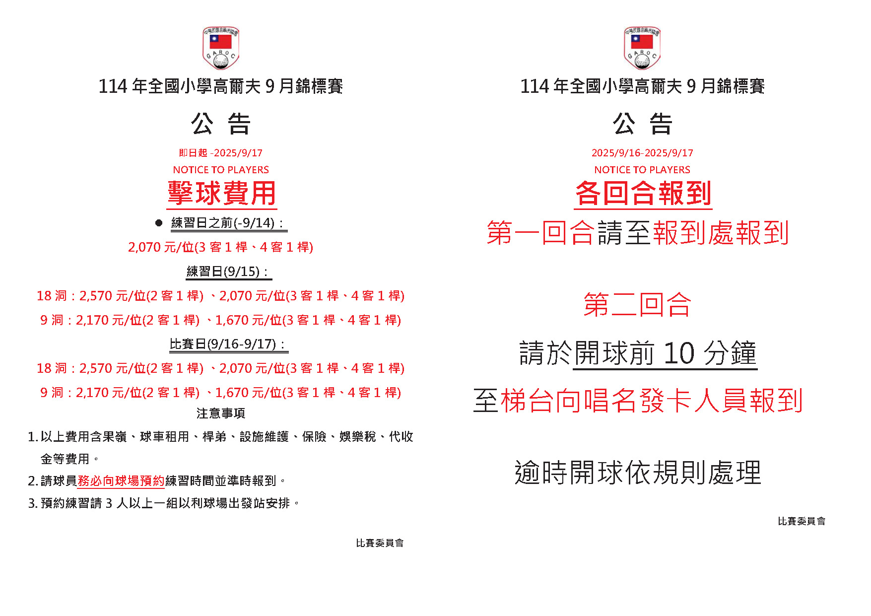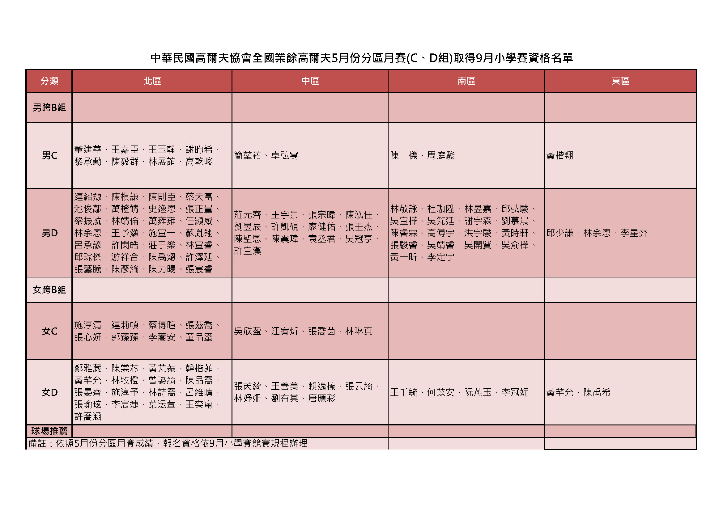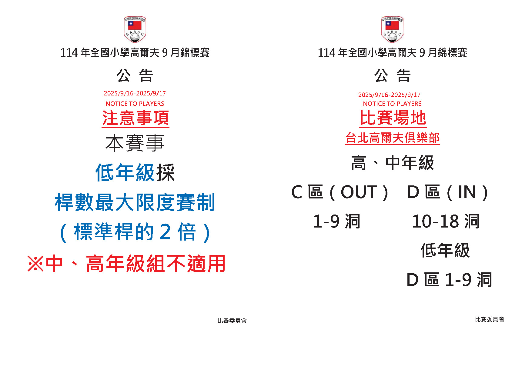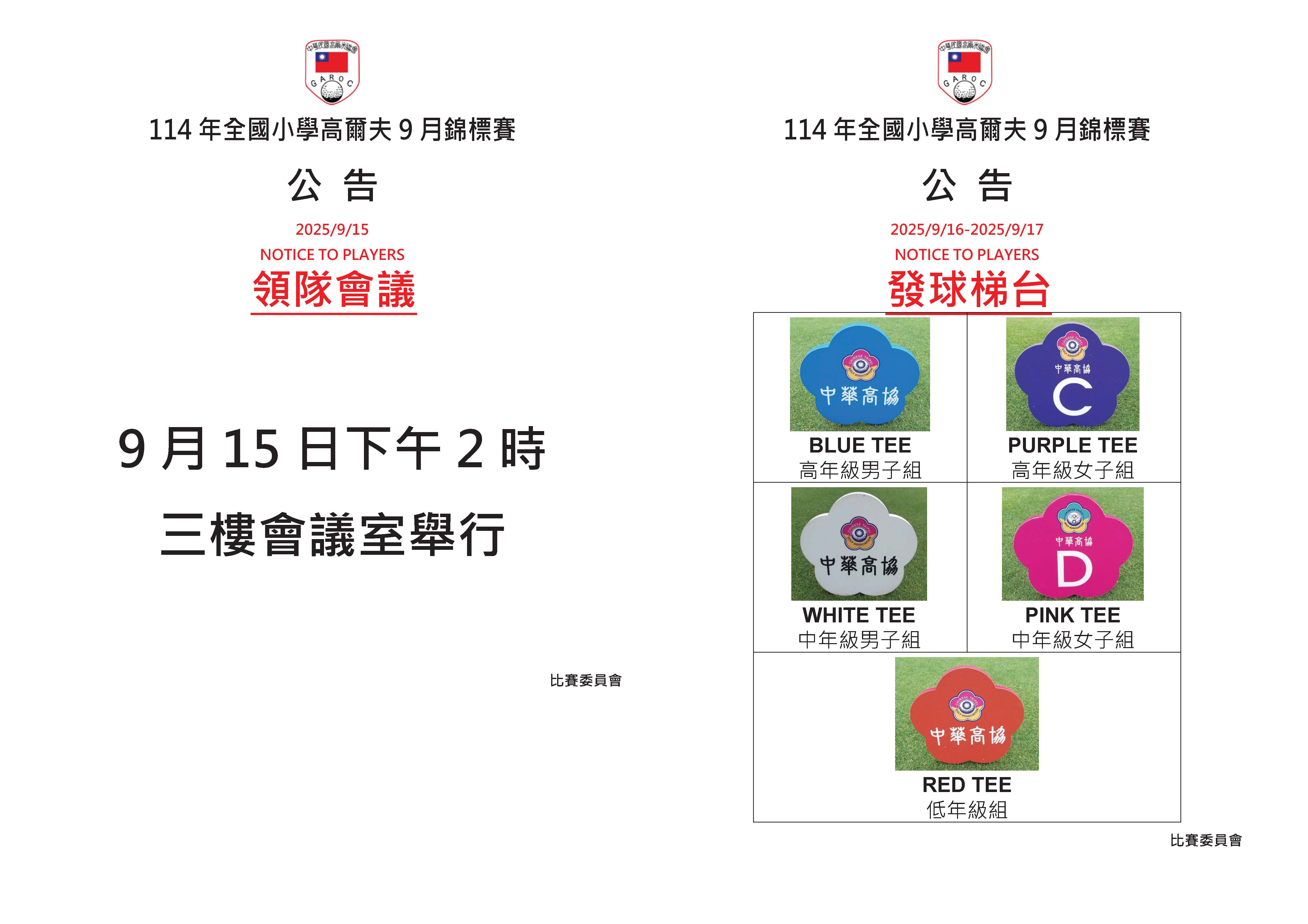 114年全國小學高爾夫9月錦標賽-報名成功名單