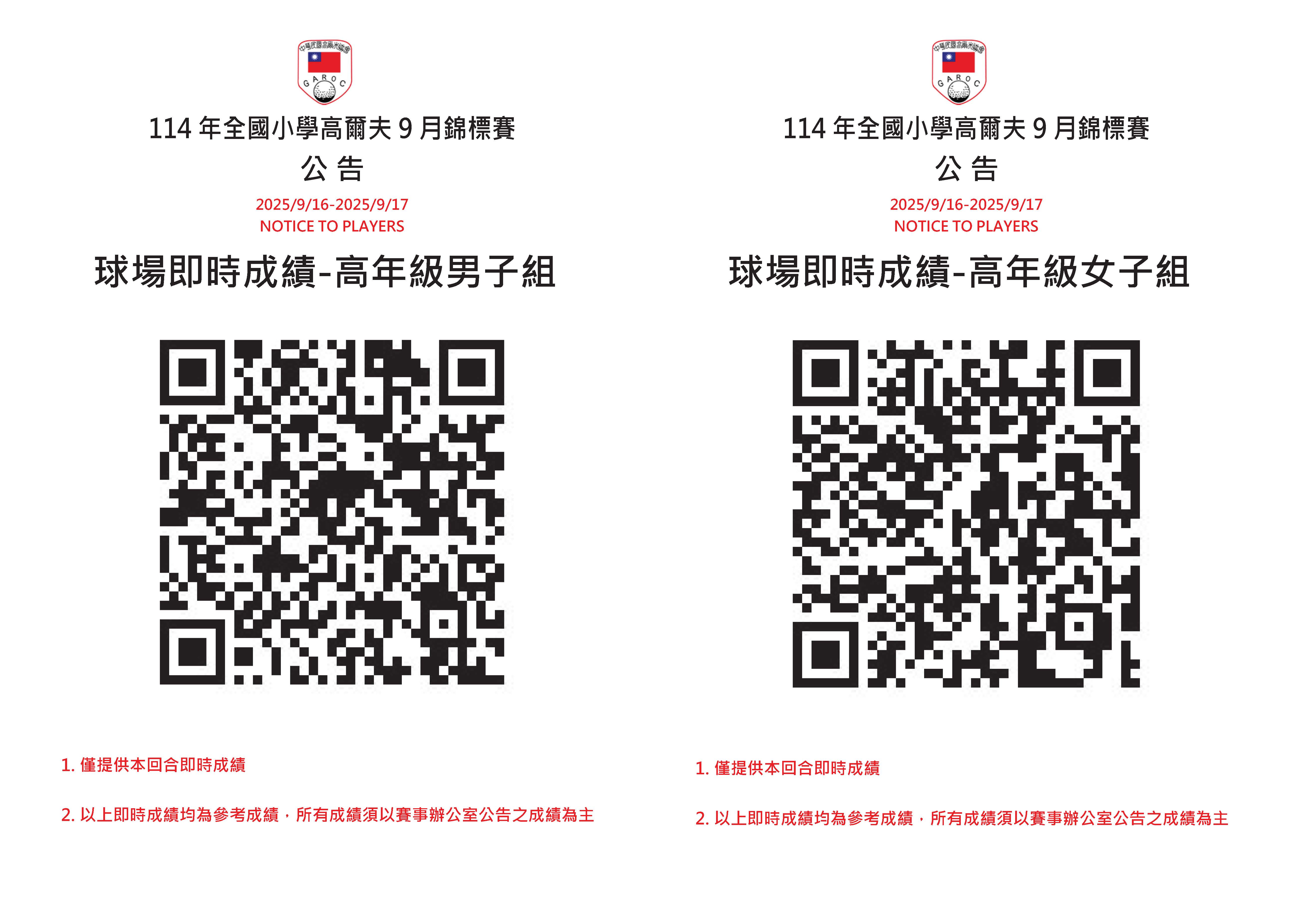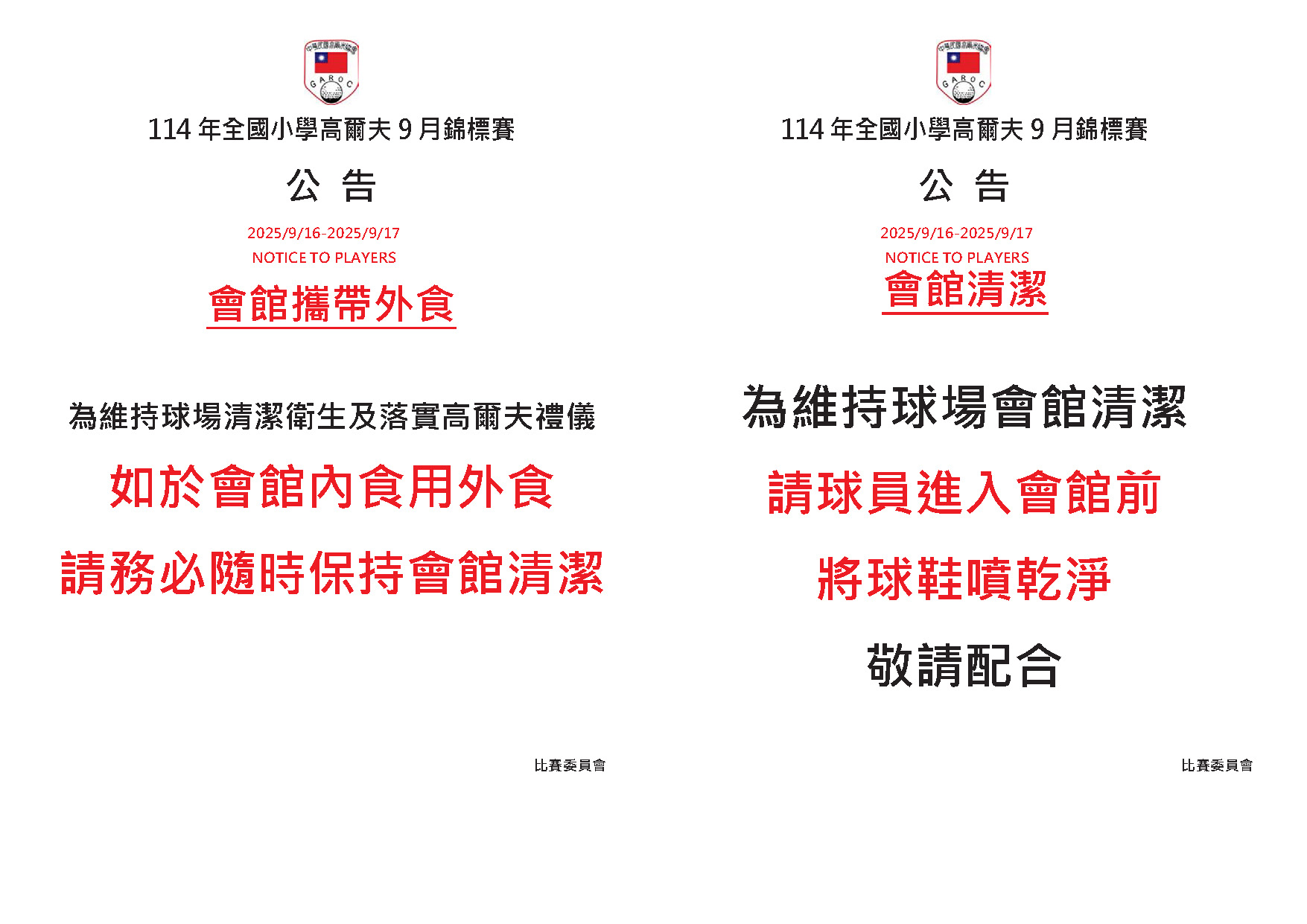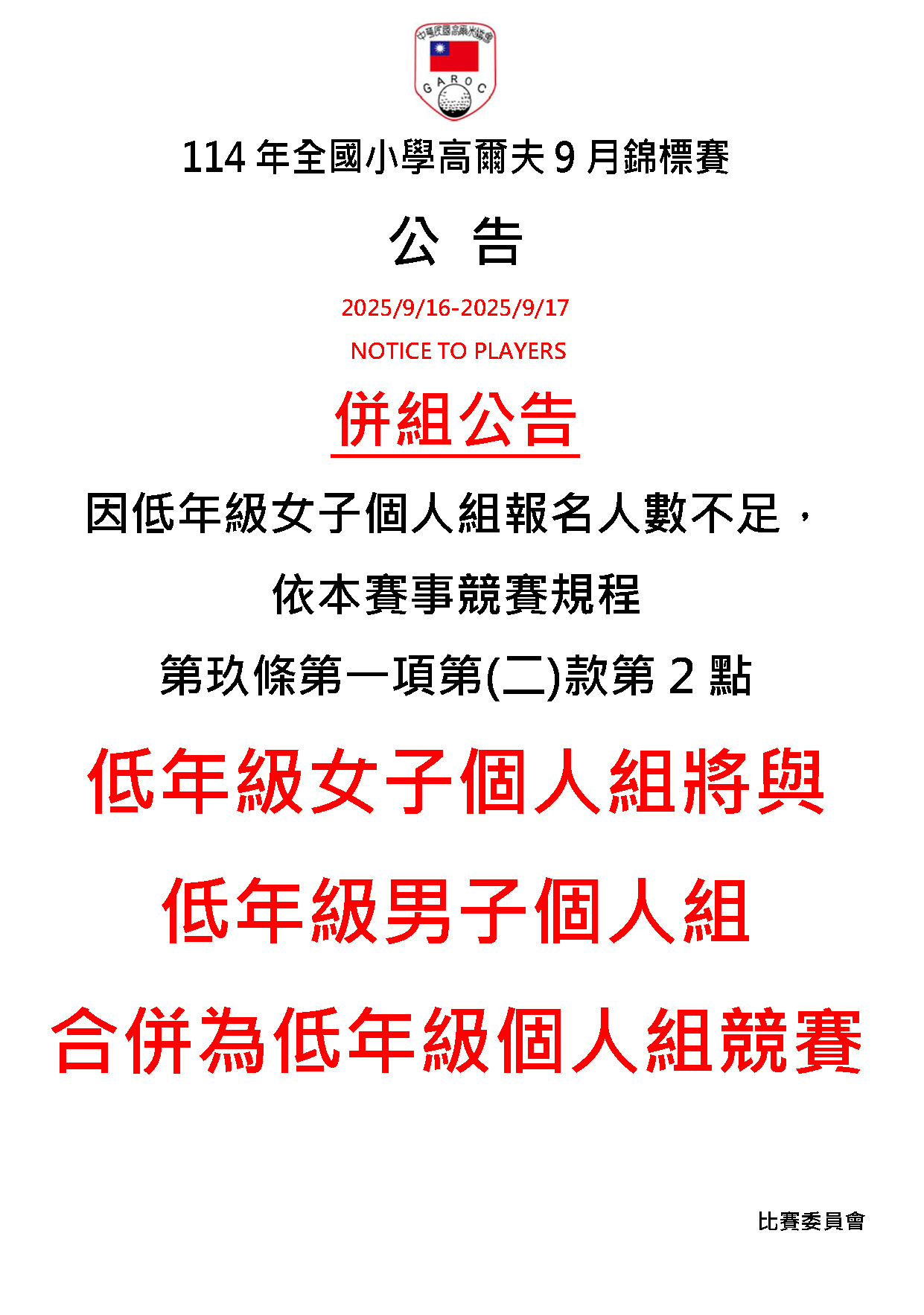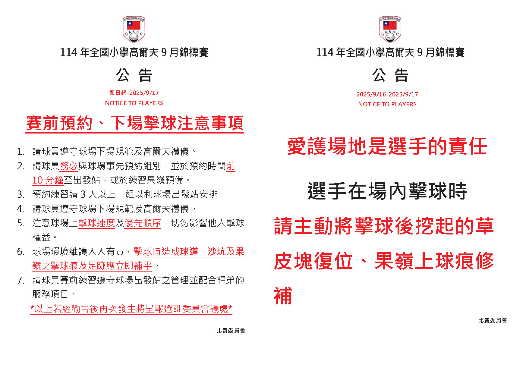 114年全國小學高爾夫9月錦標賽-報名成功名單