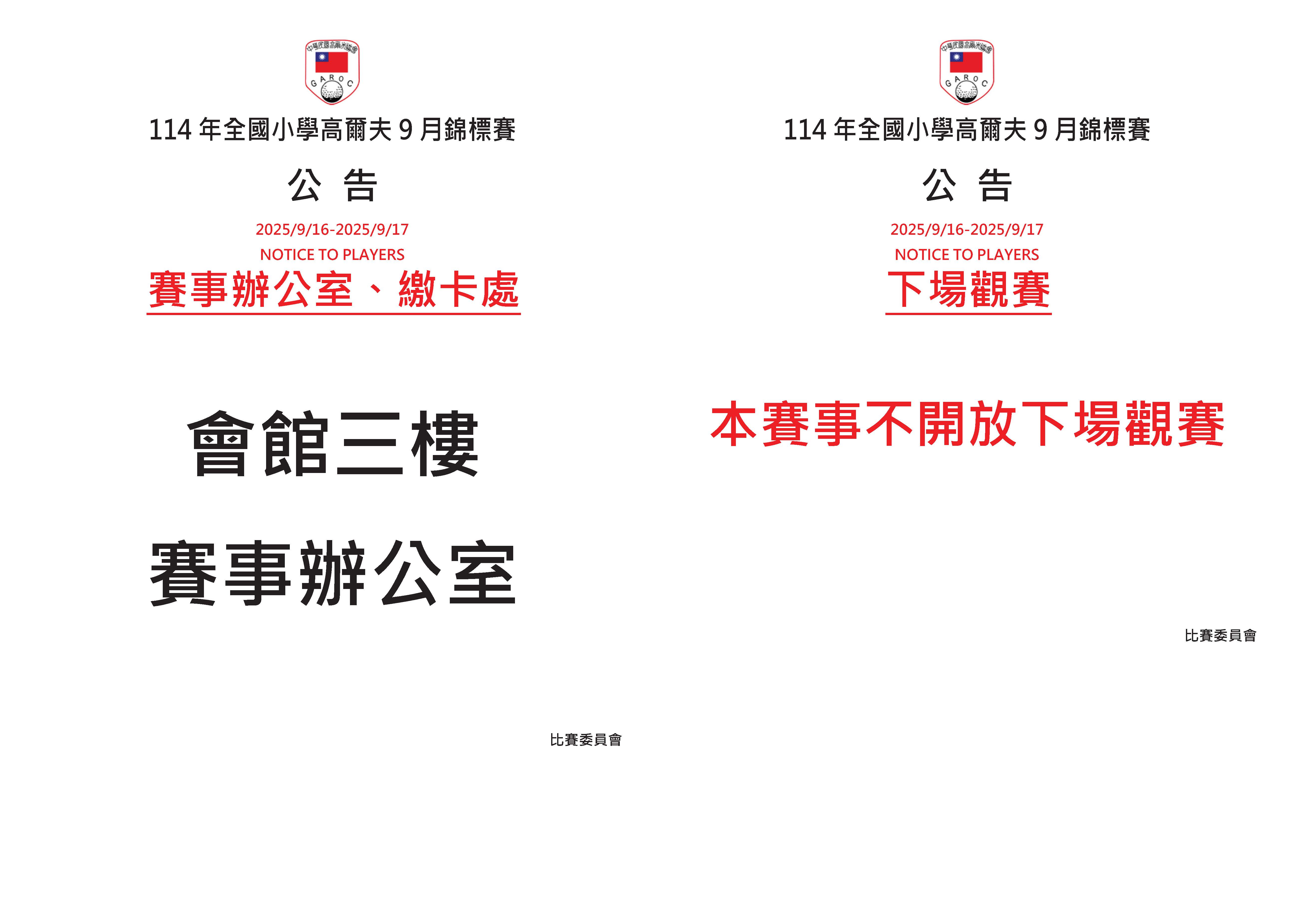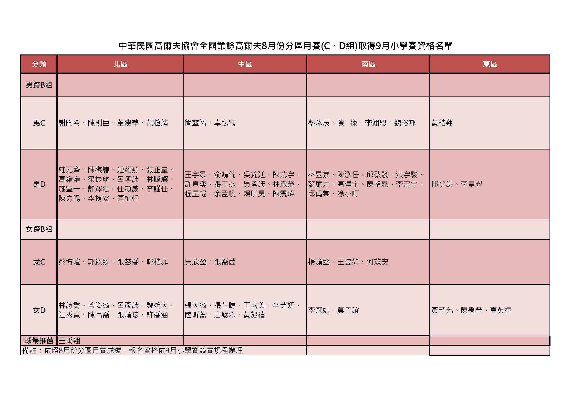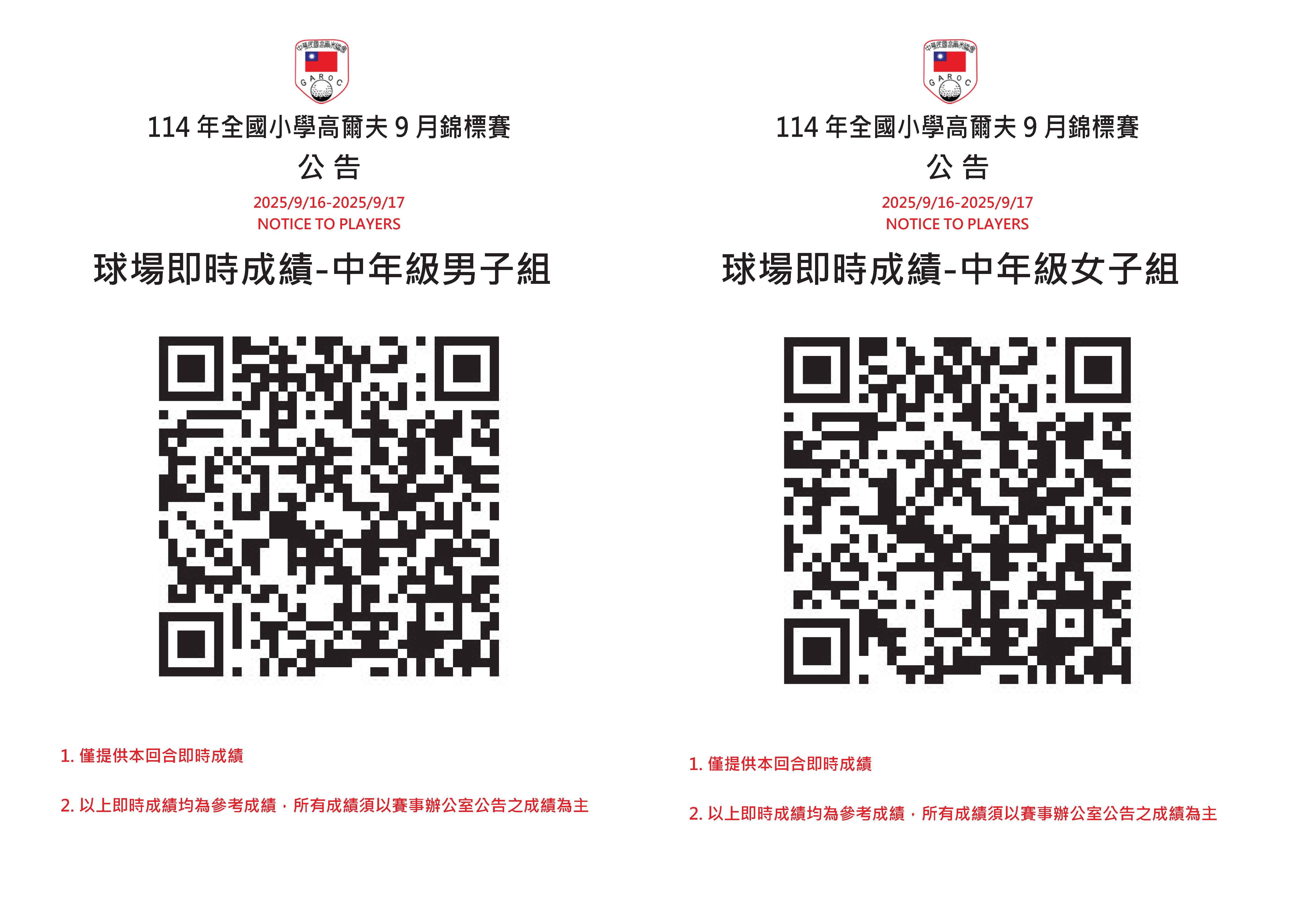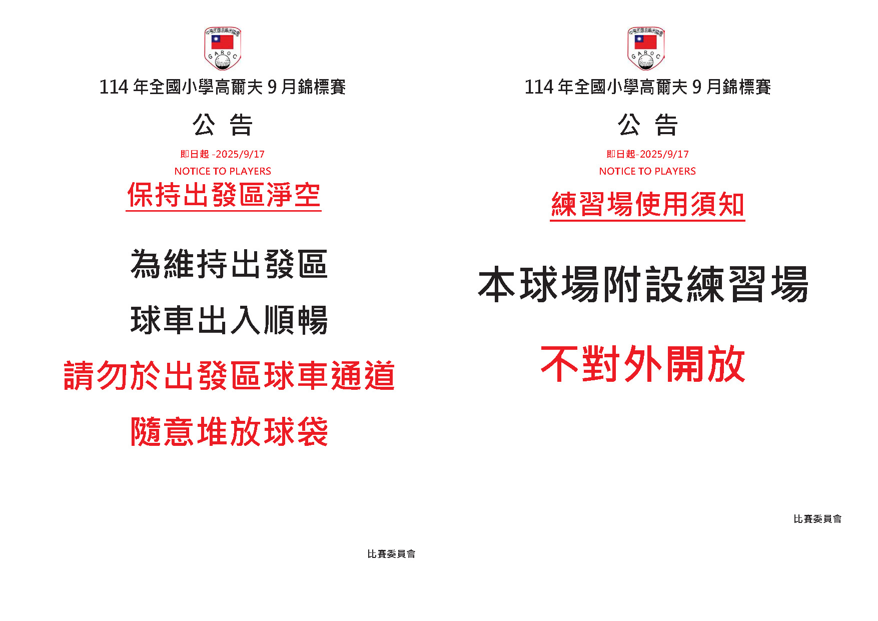 114年全國小學高爾夫9月錦標賽-報名成功名單