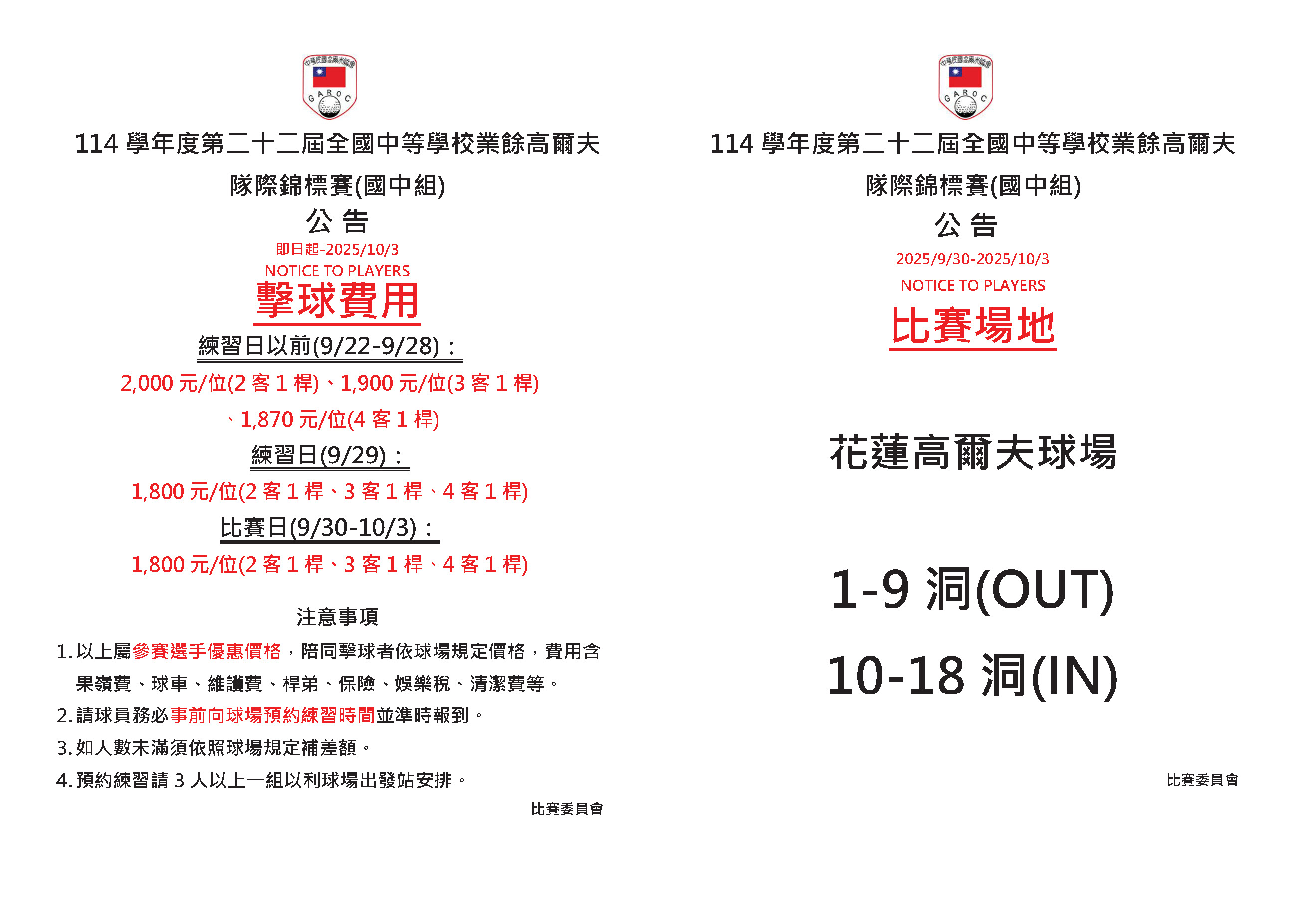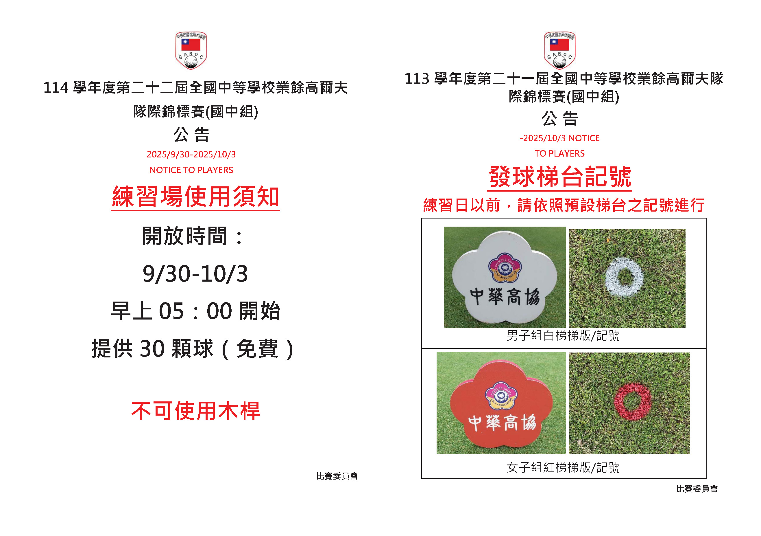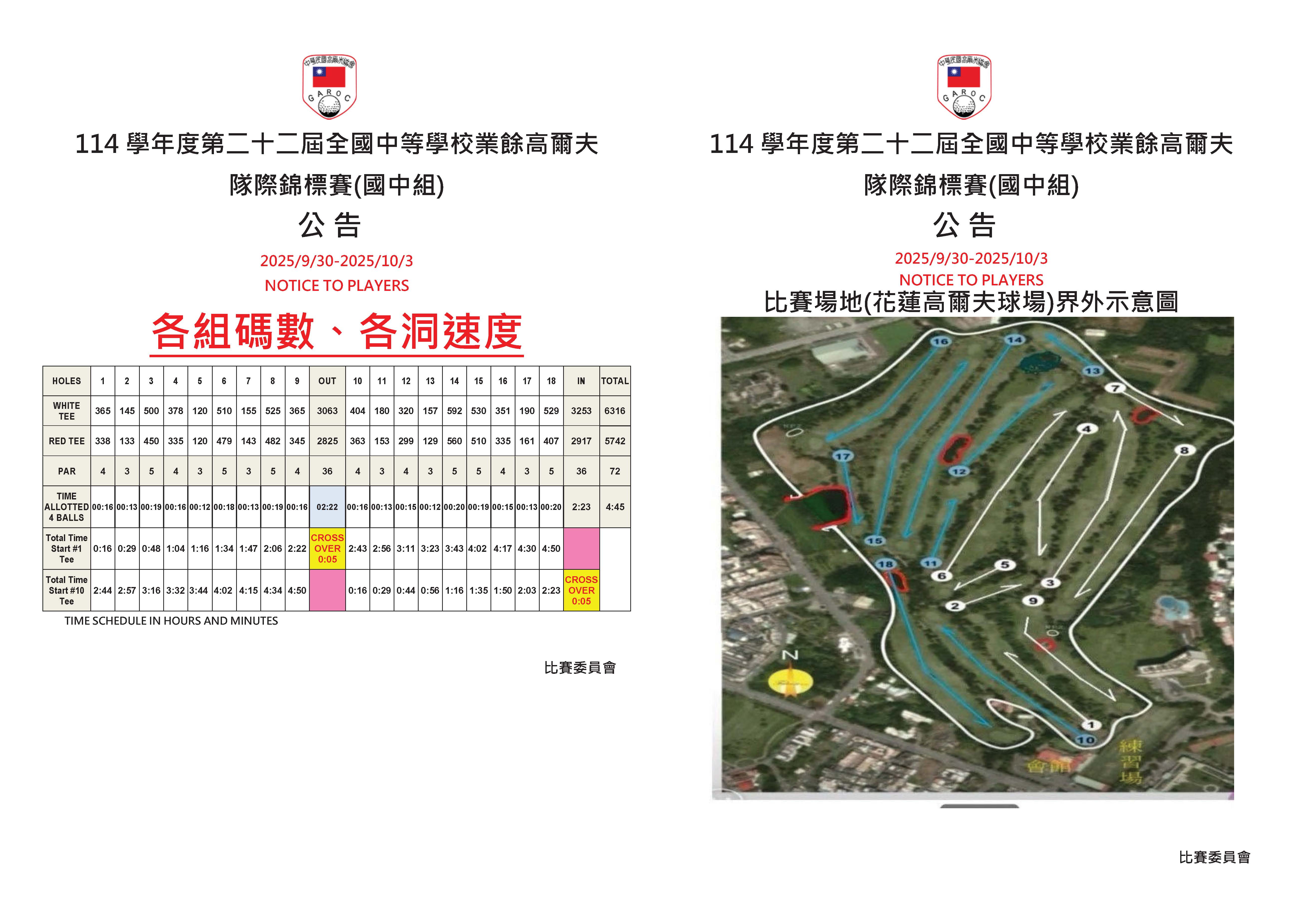 114學年度第二十二屆全國中等學校業餘高爾夫隊際錦標賽(國中組)