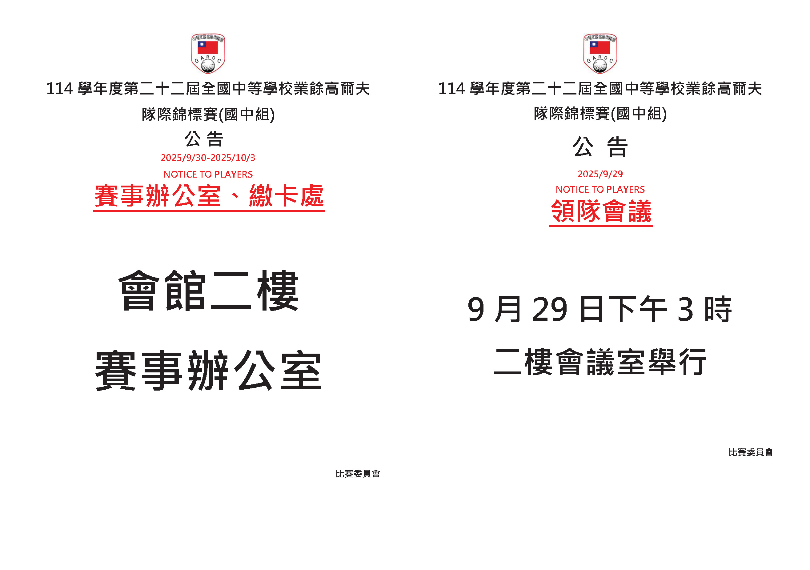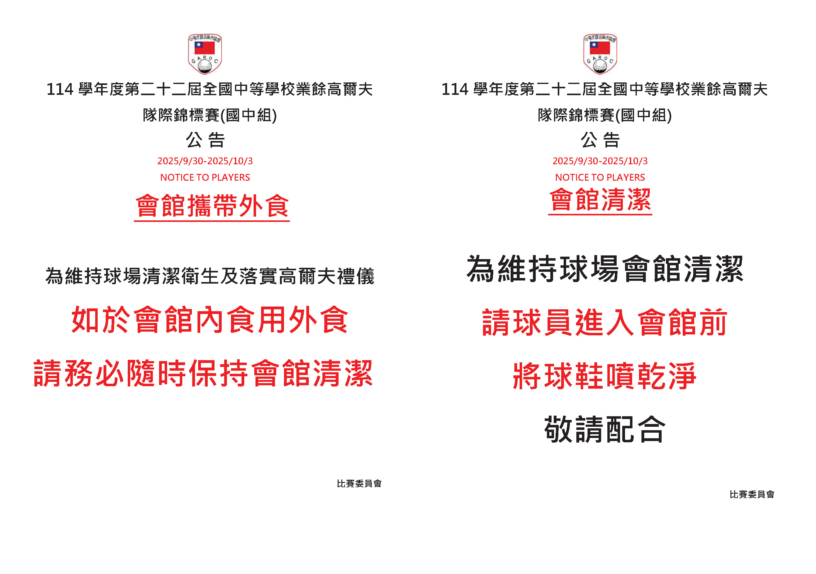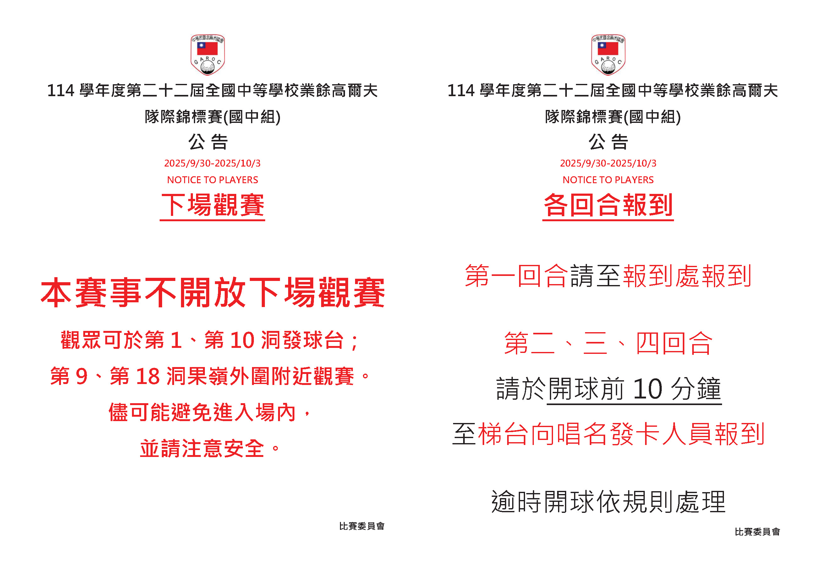 114學年度第二十二屆全國中等學校業餘高爾夫隊際錦標賽(國中組)