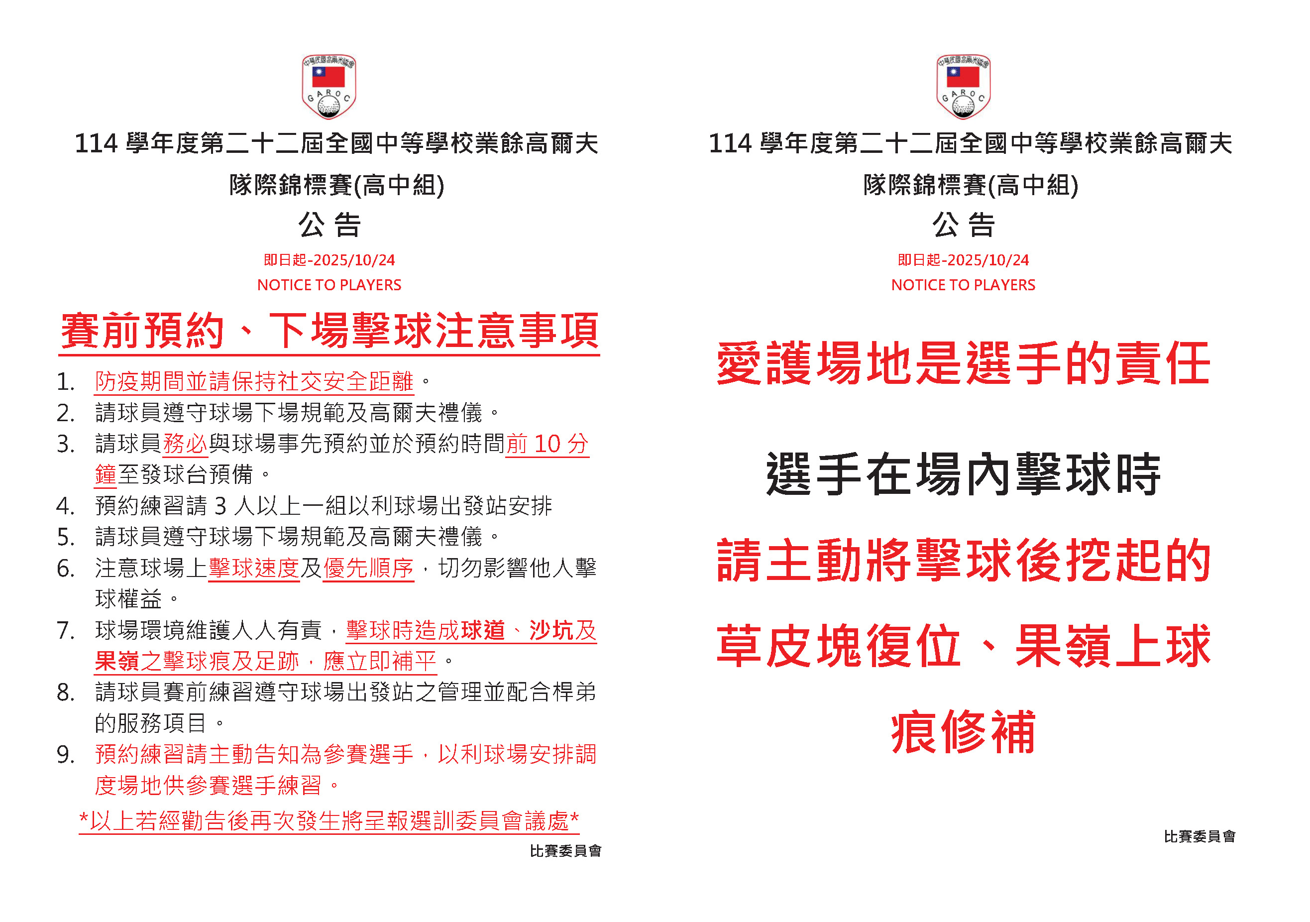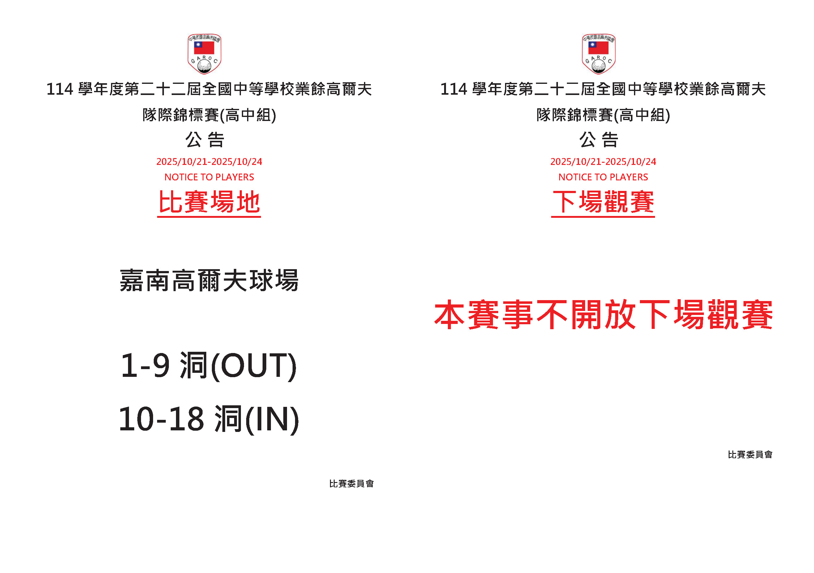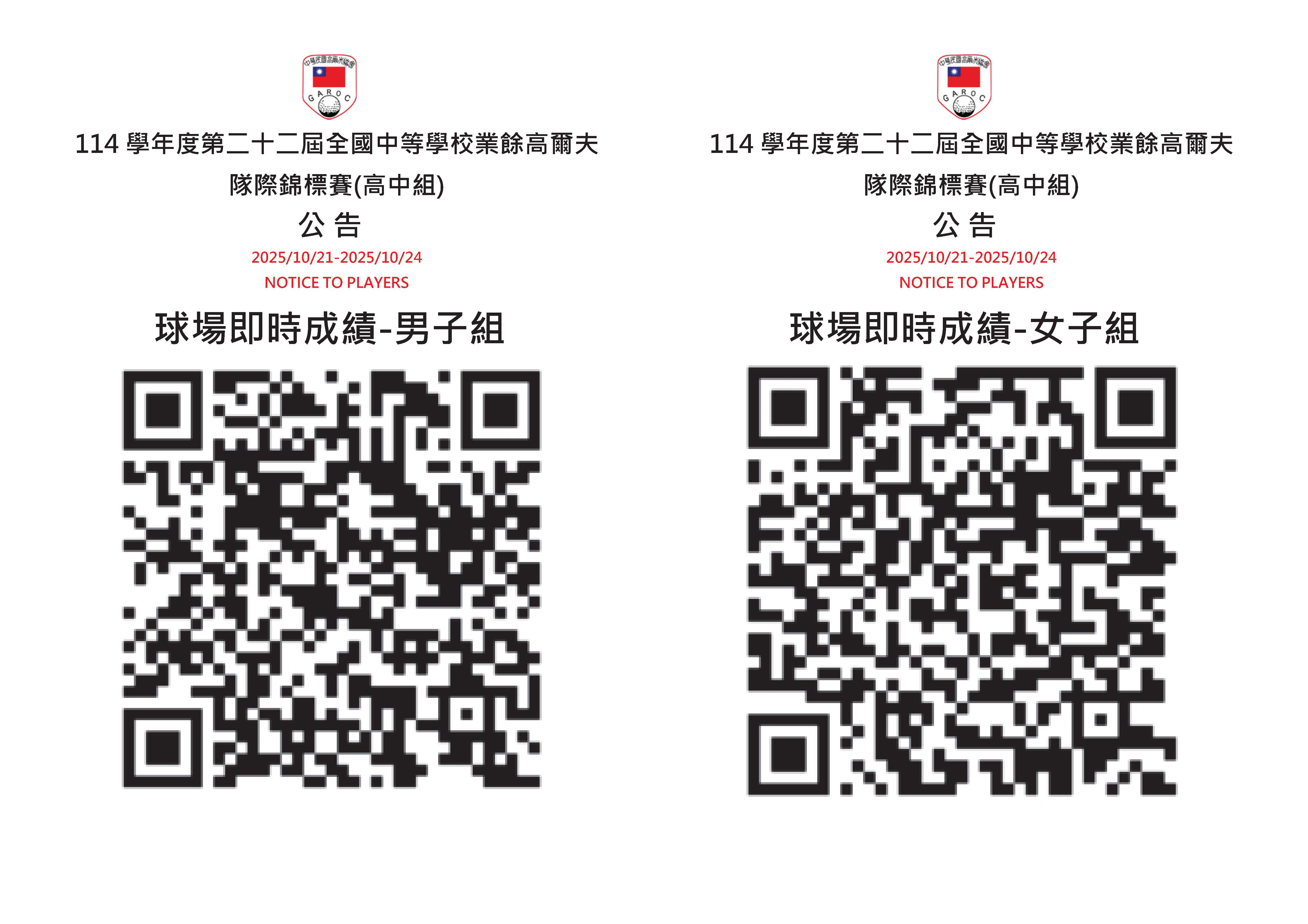 114學年度第二十二屆全國中等學校業餘高爾夫隊際錦標賽(高中組)
