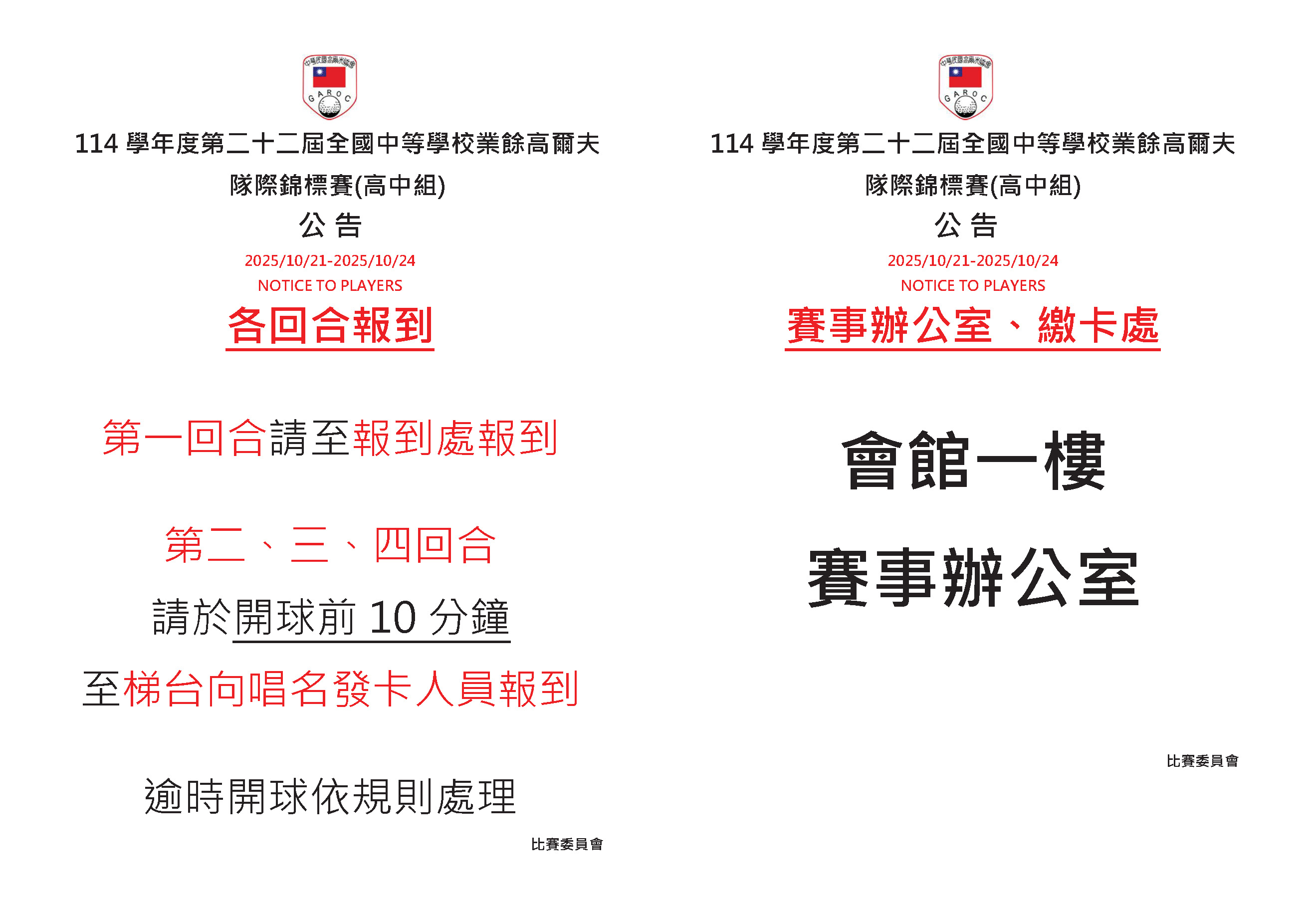 各回合報到.賽事辦公室