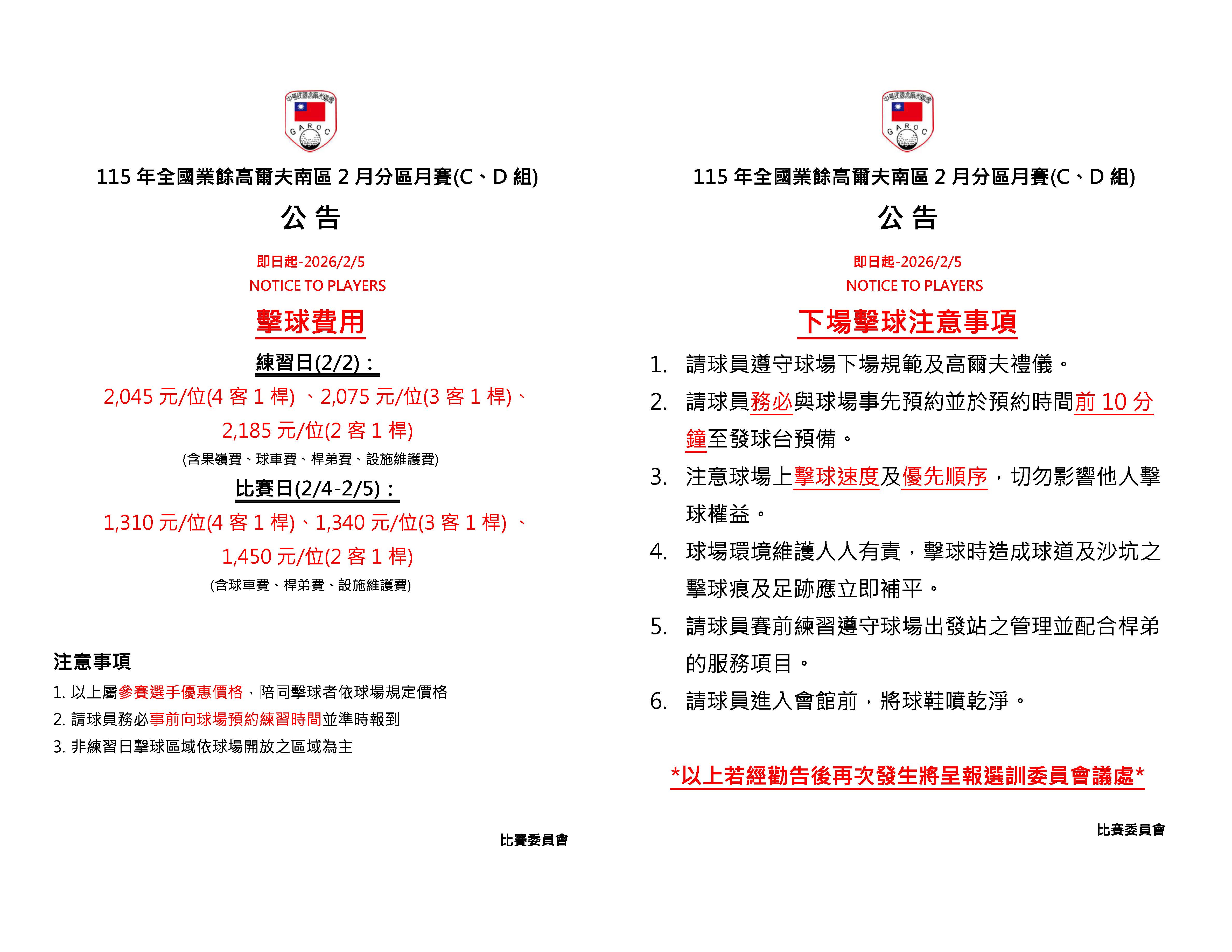 115年全國業餘高爾夫南區2月分區月賽(C、D組)