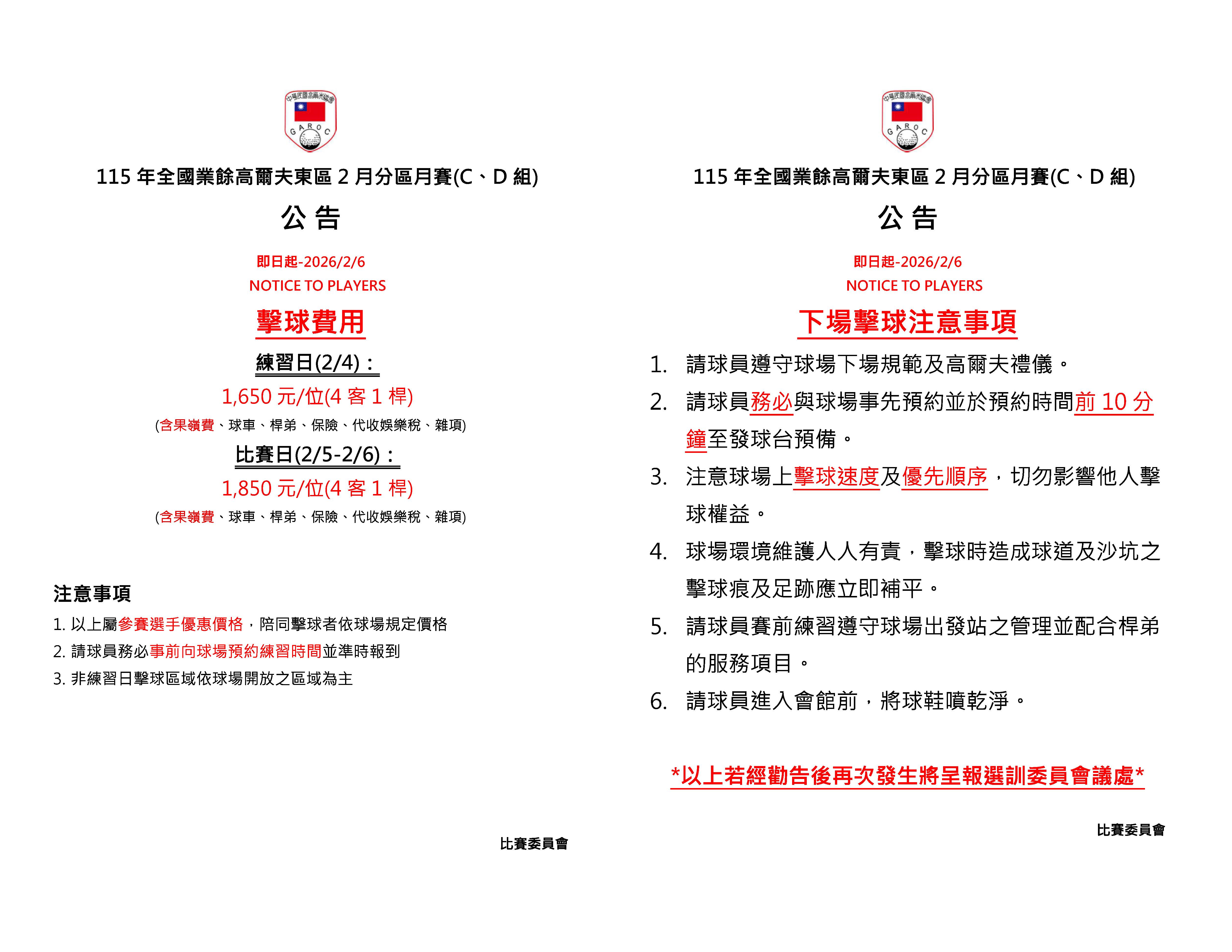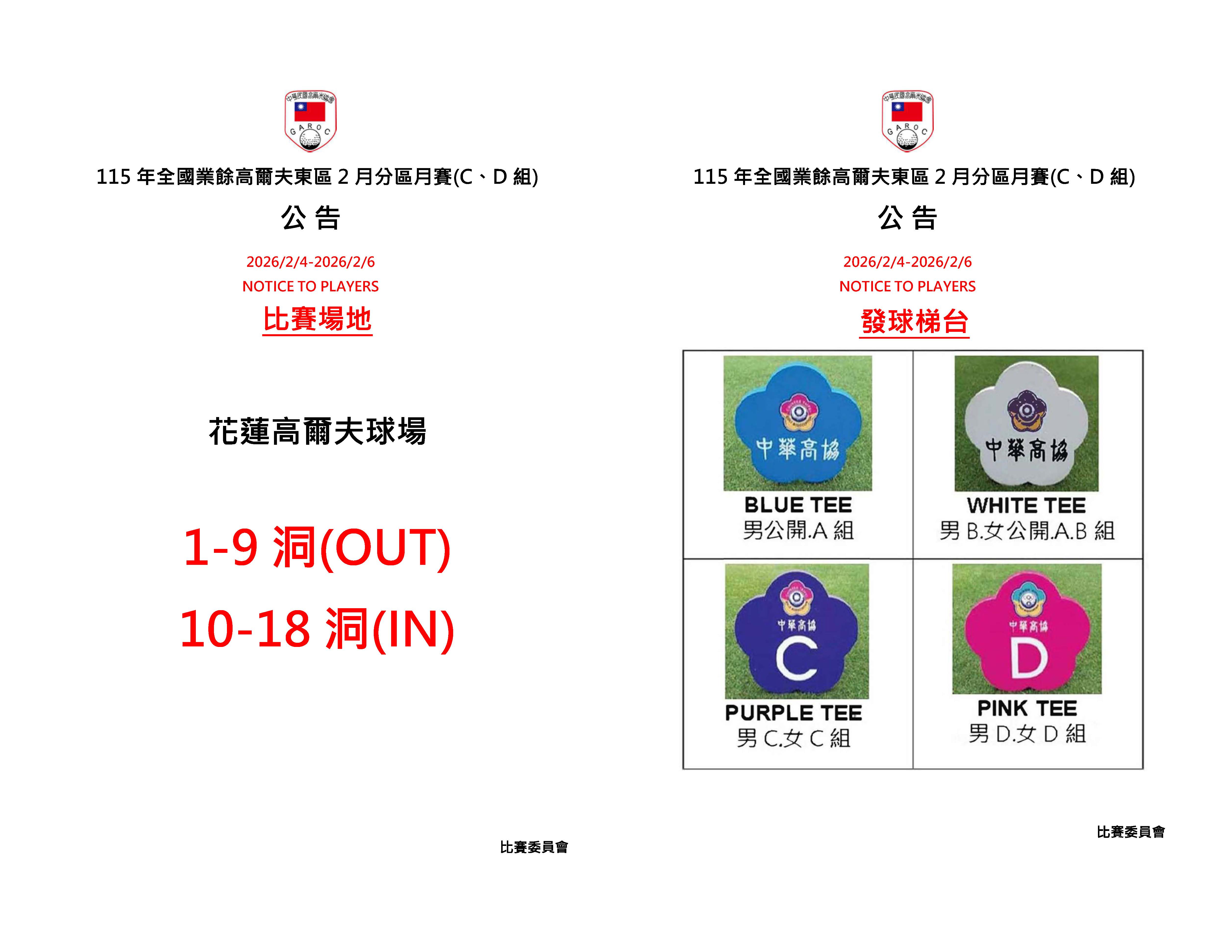 115年全國業餘高爾夫東區2月分區月賽(C、D組)