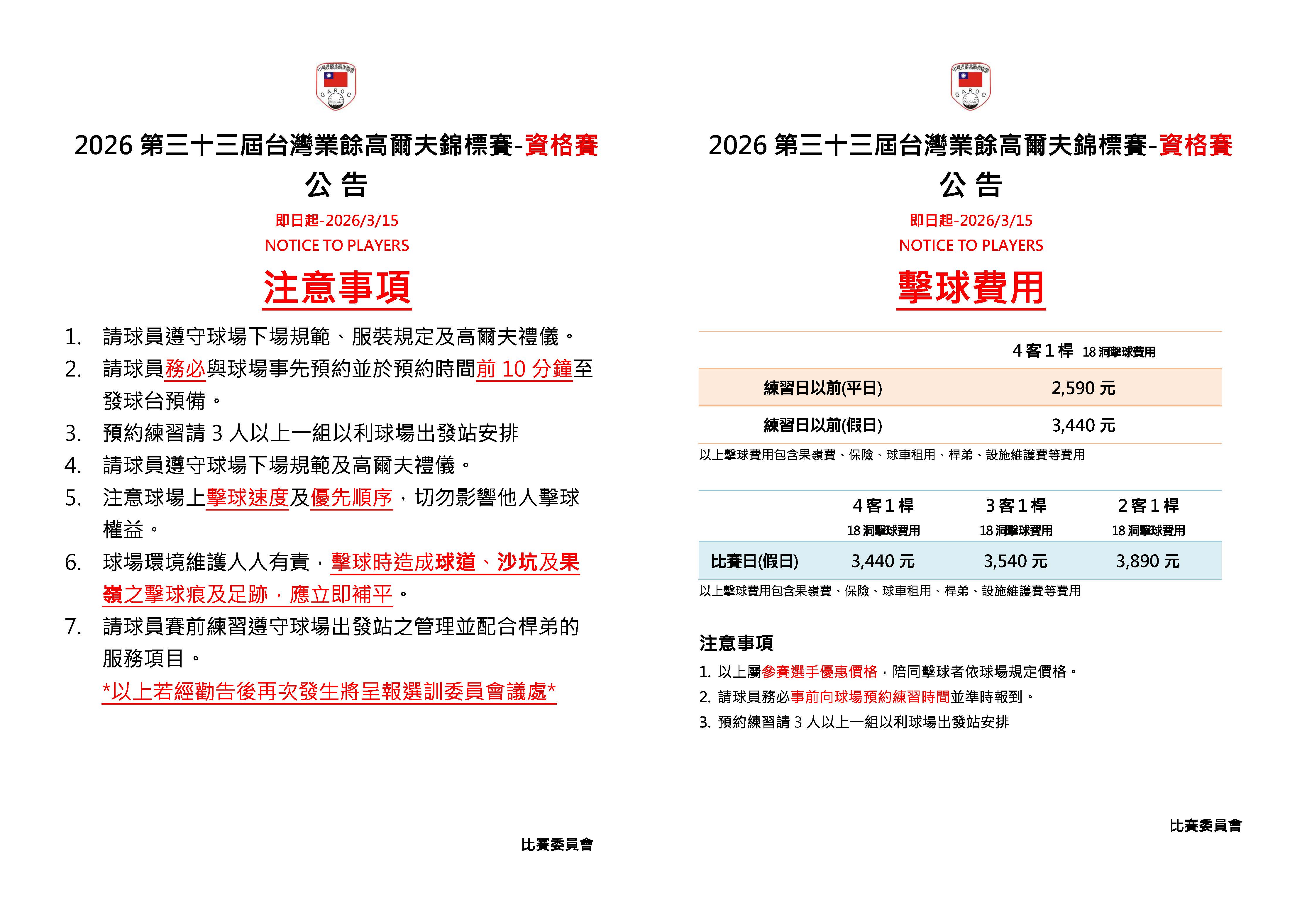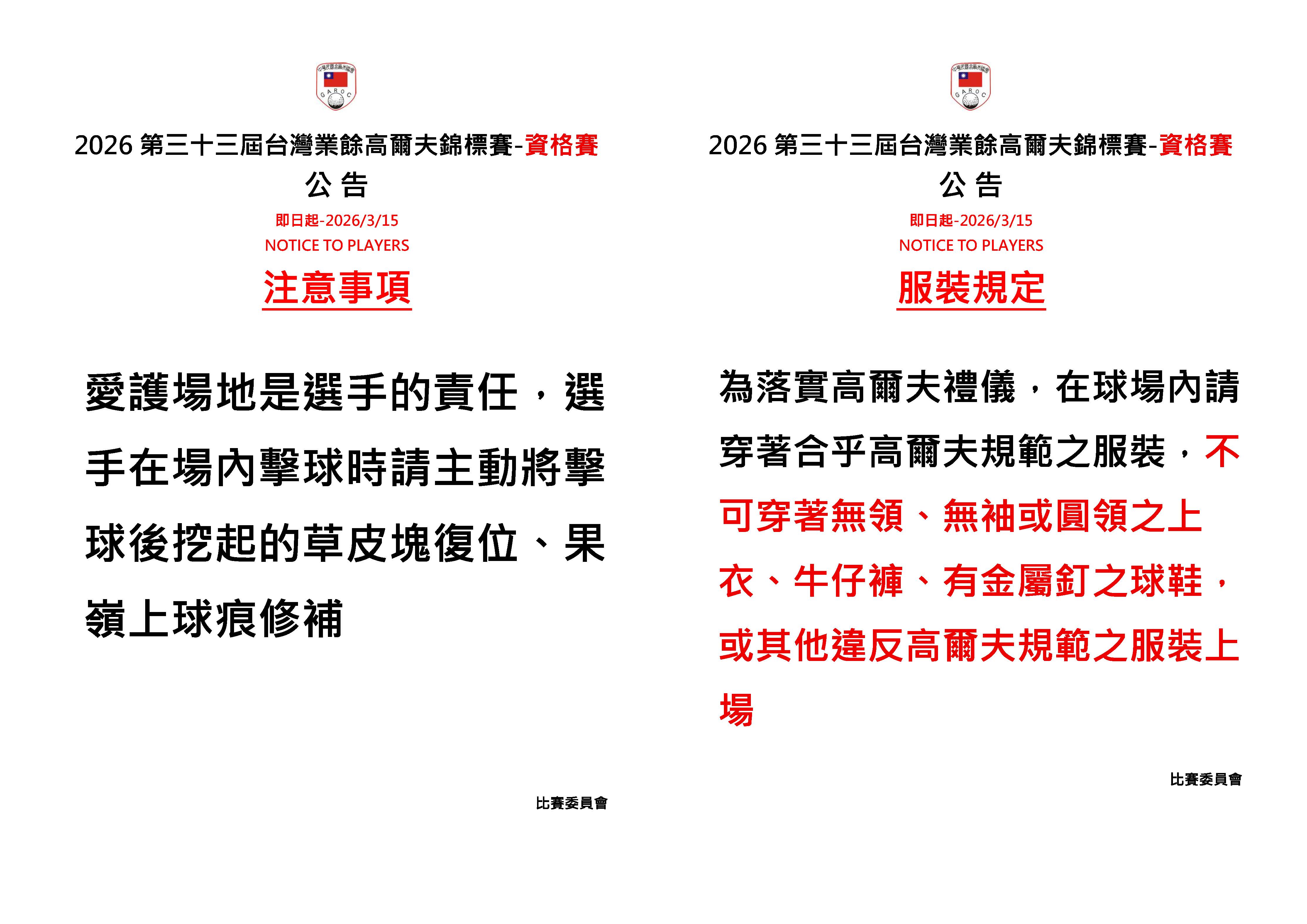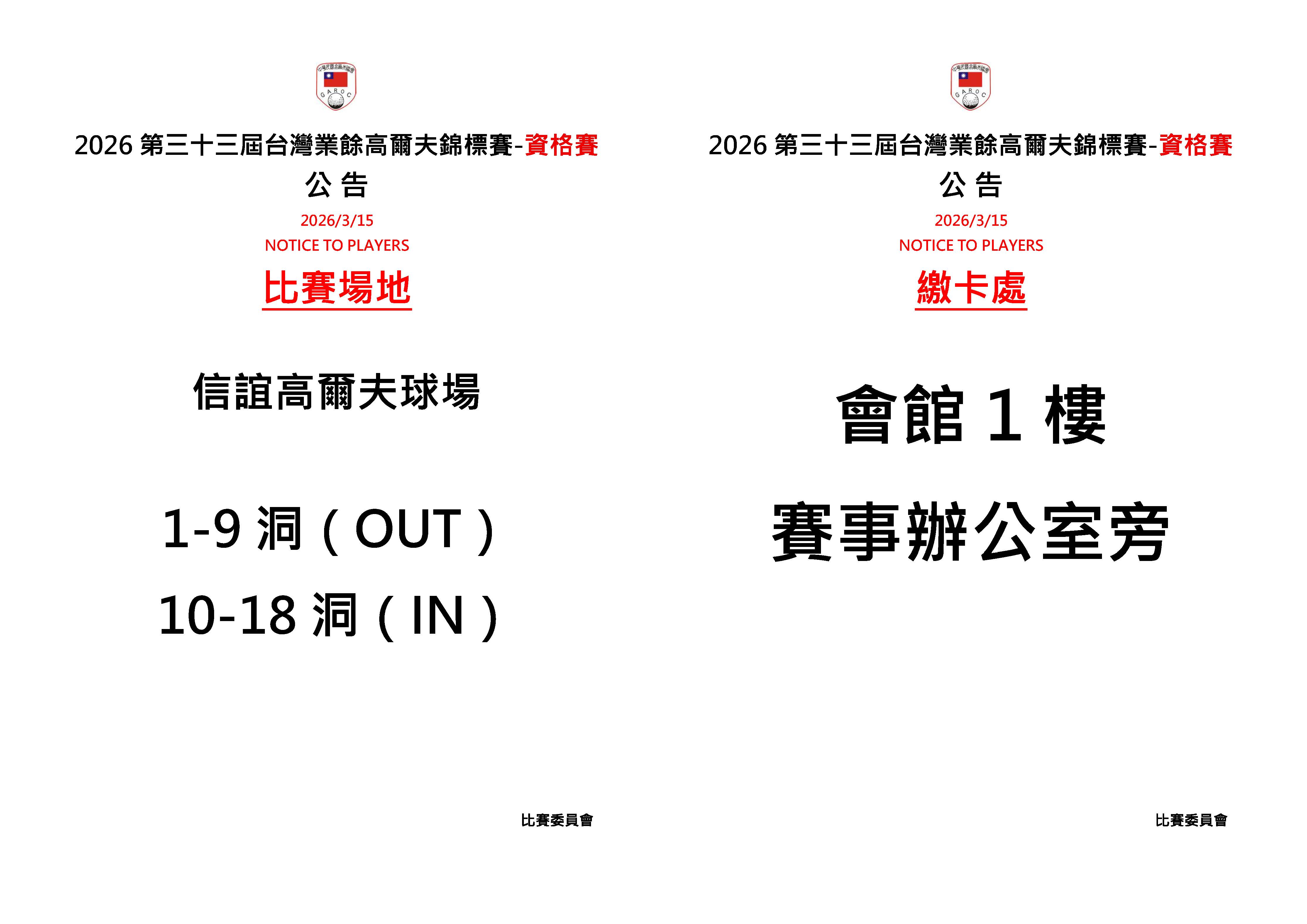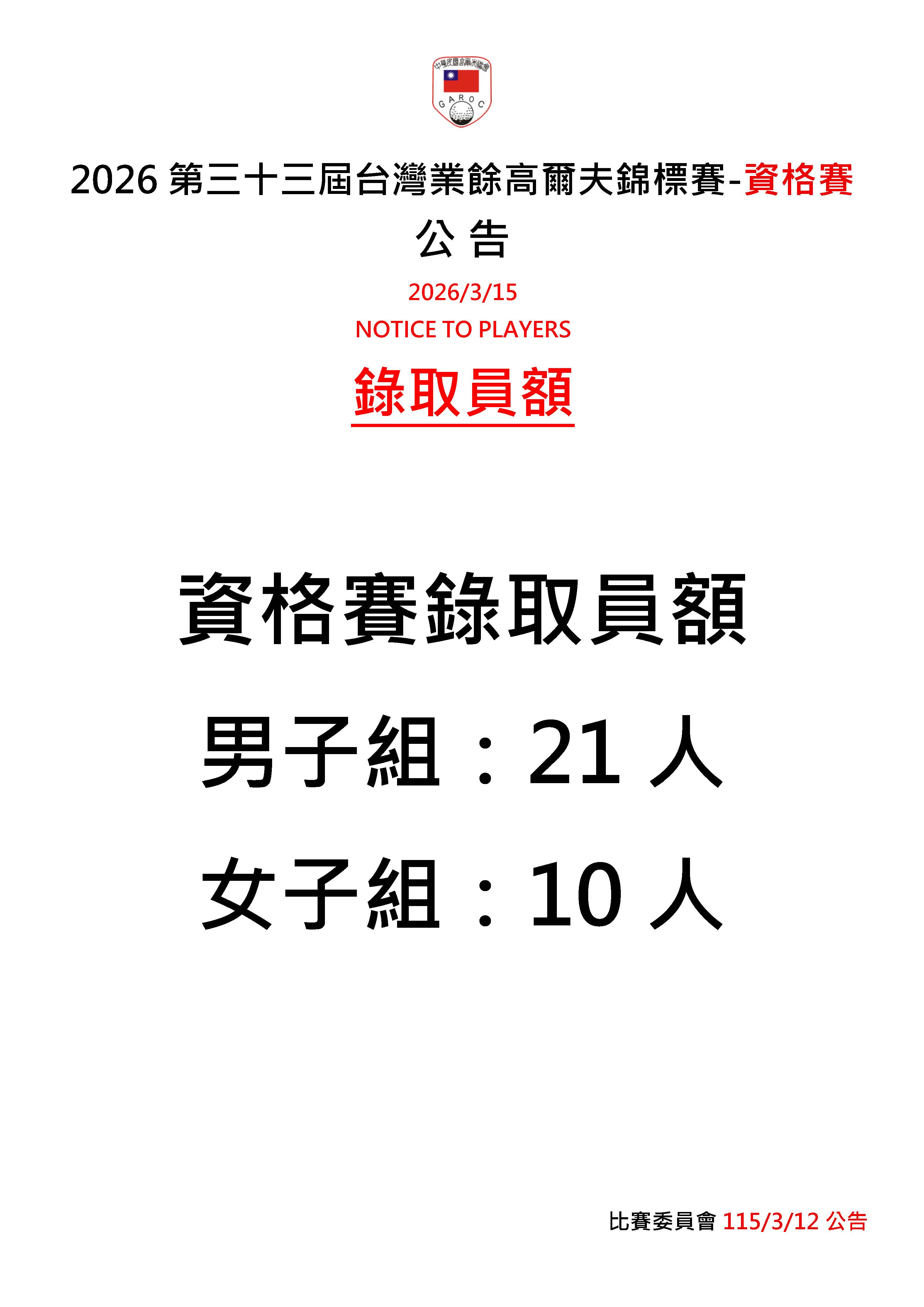 2026第三十三屆台灣業餘高爾夫錦標賽-資格賽
