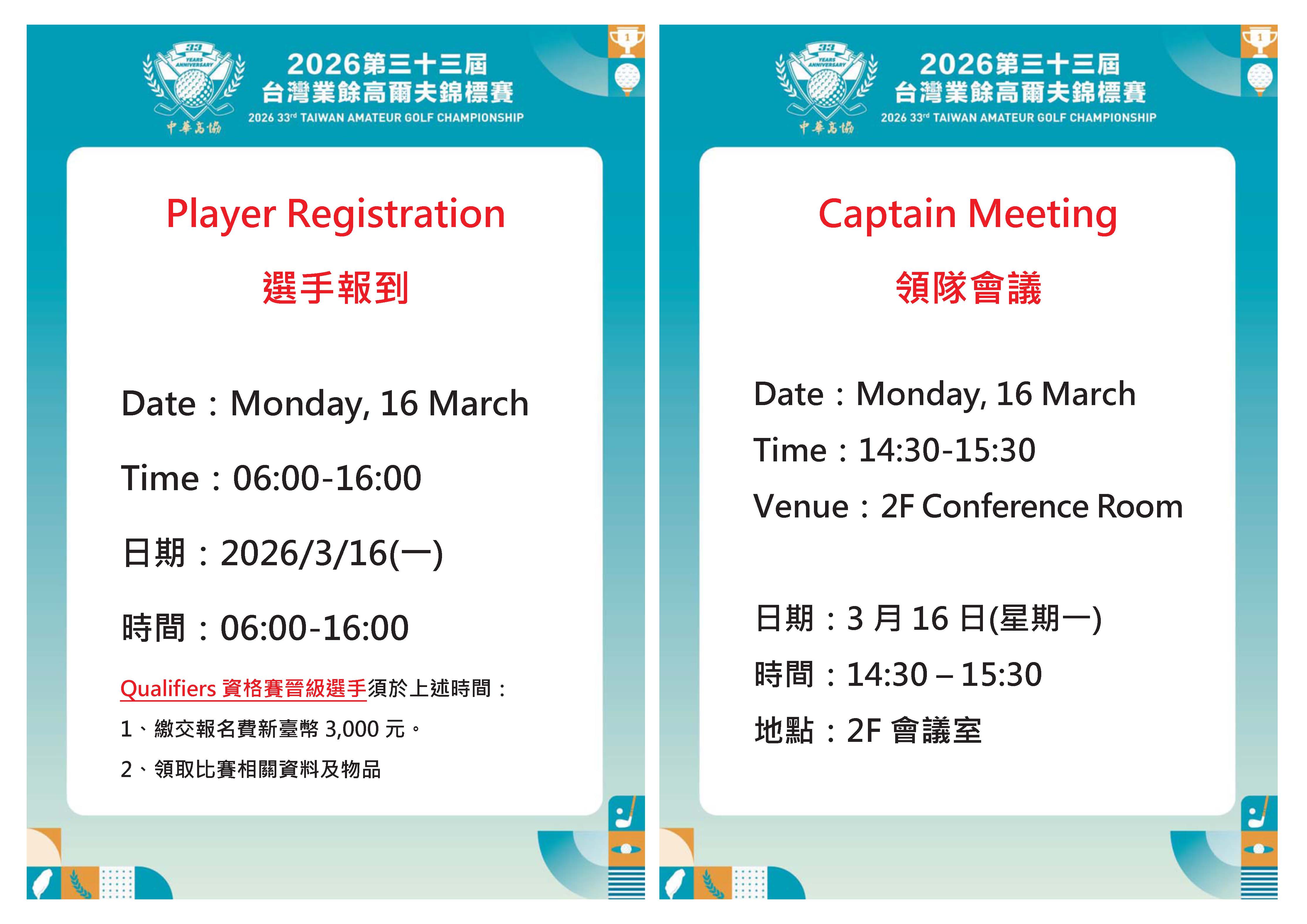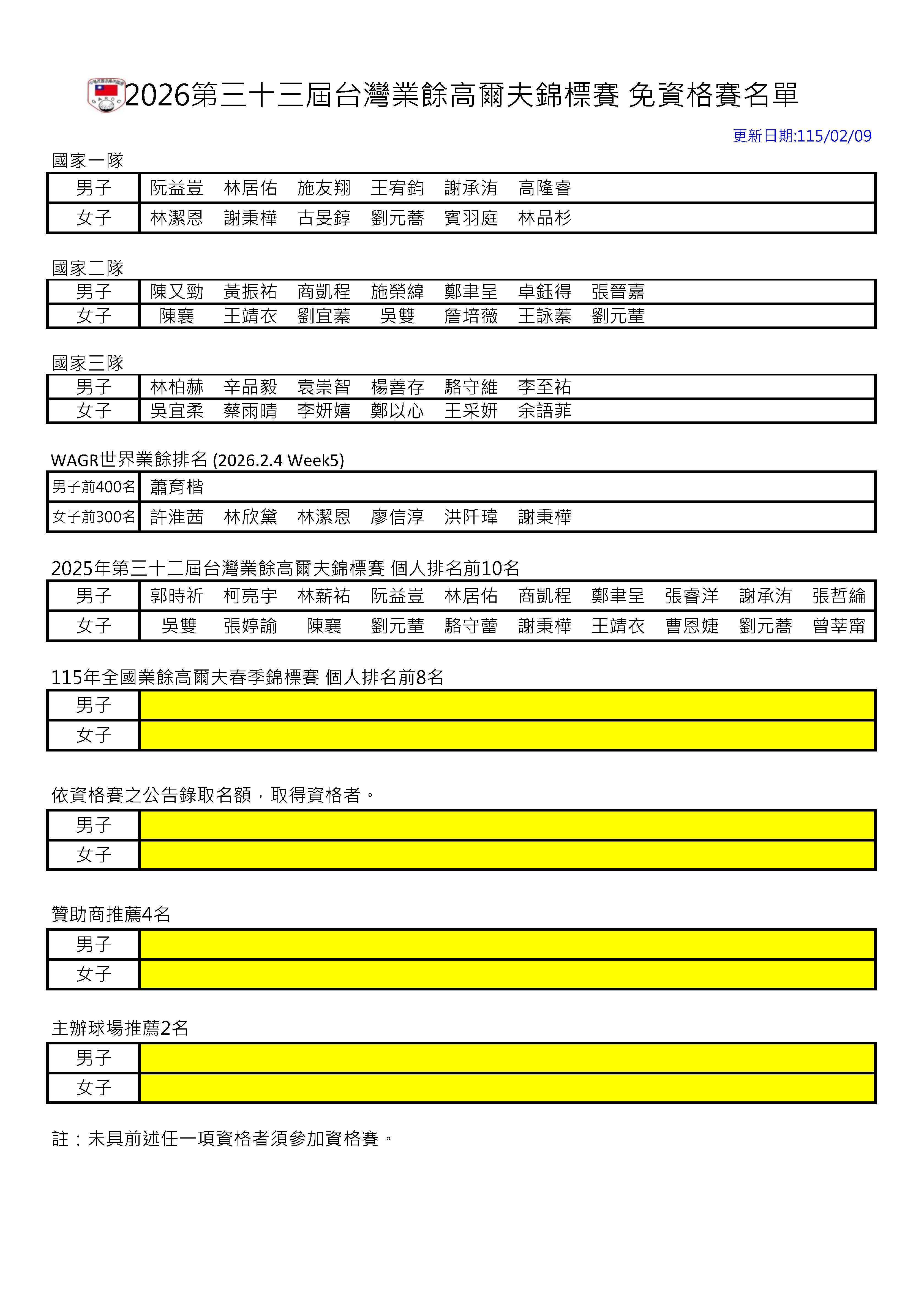 2026 第三十三屆台灣業餘高爾夫錦標賽