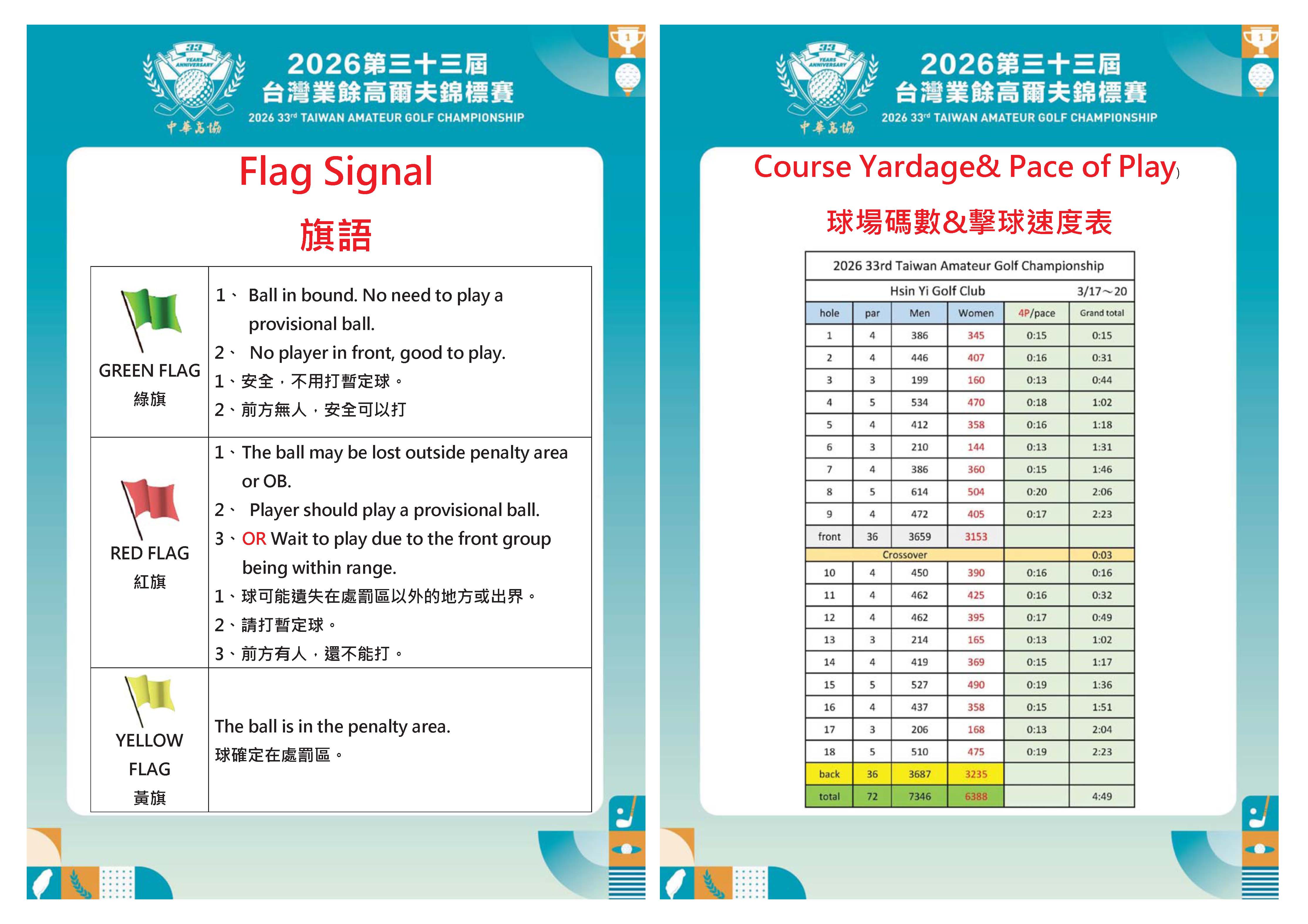 Flag Signal、Course Yardage& Pace of Play