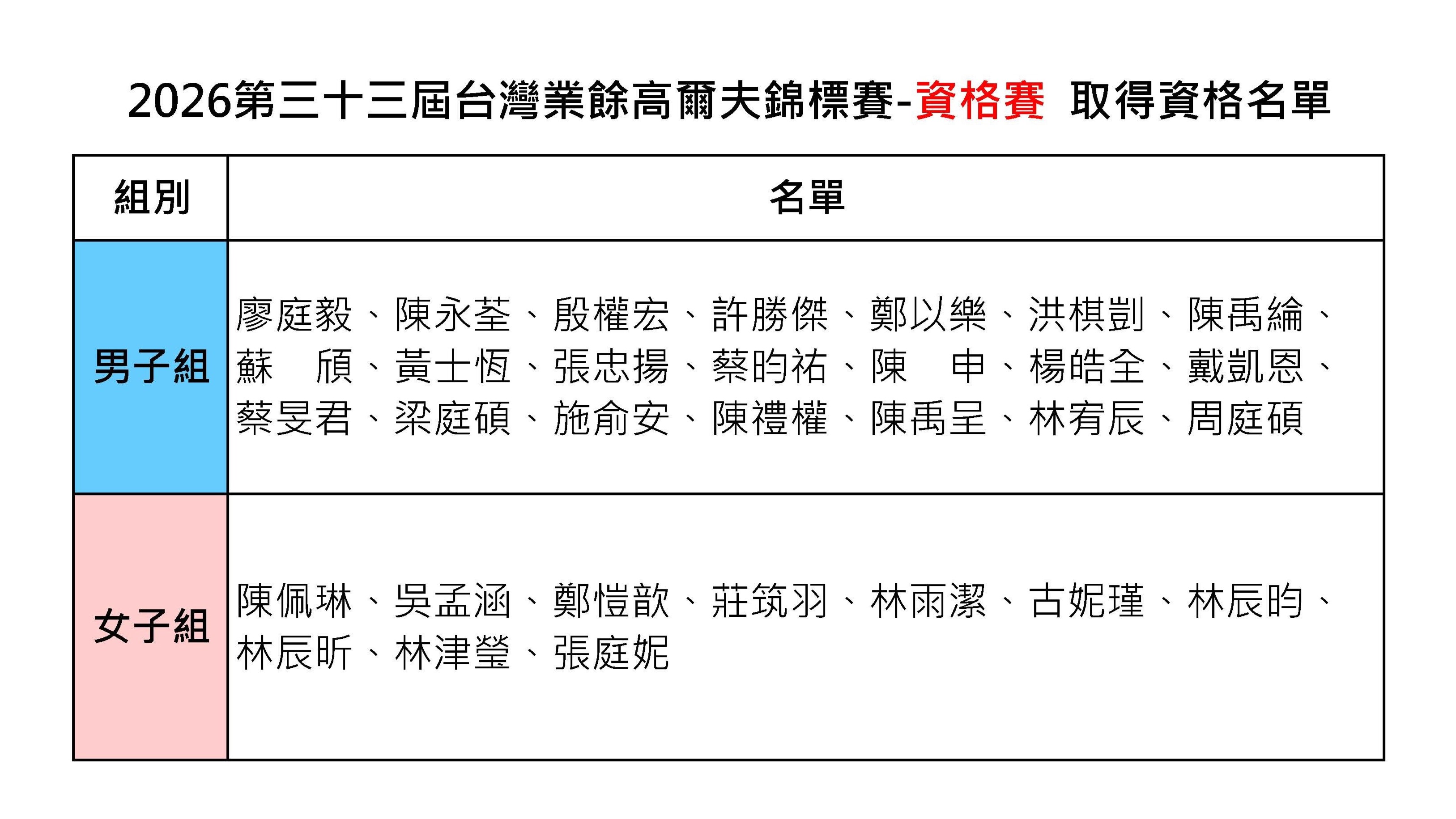 取得正賽資格名單